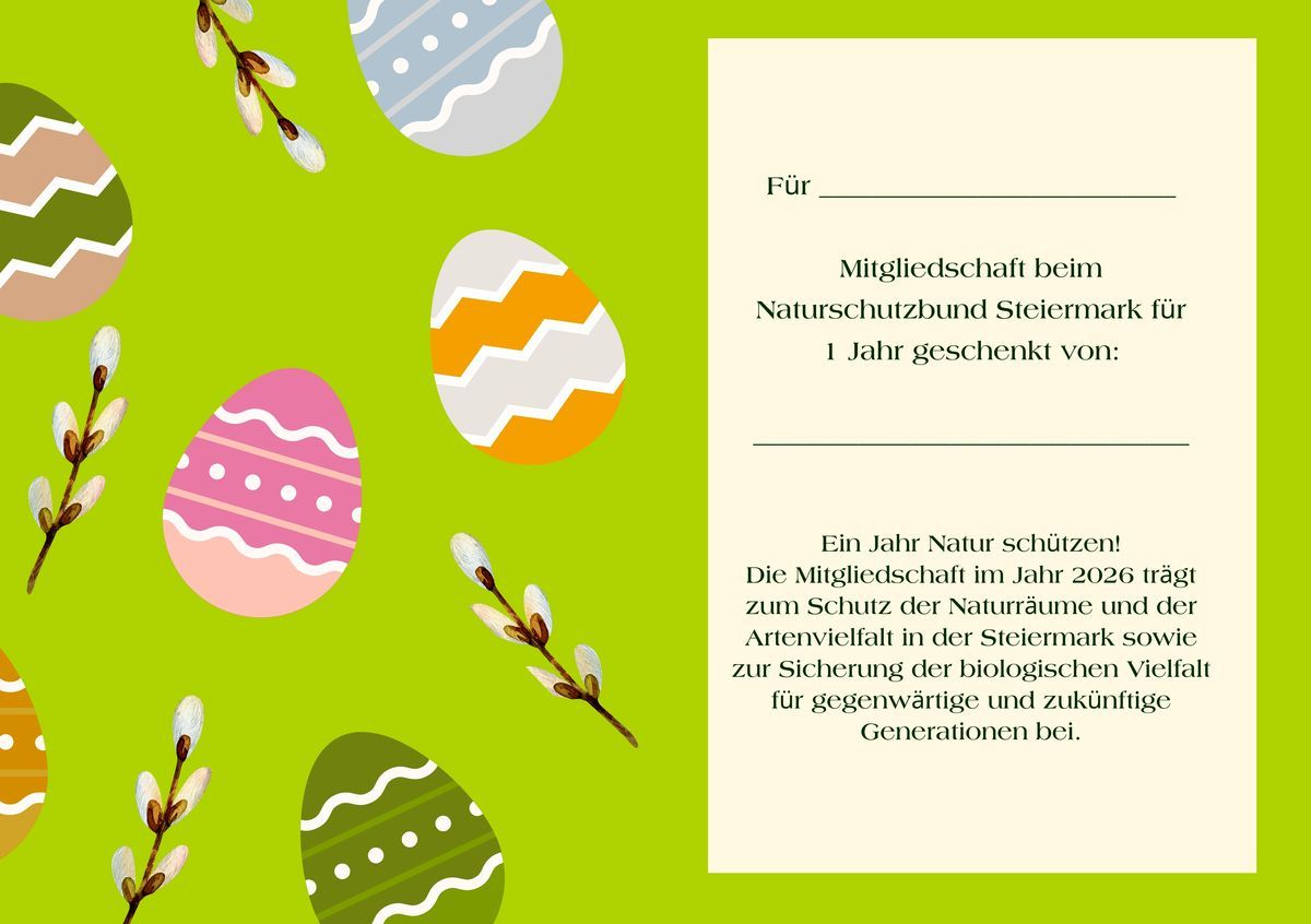 Verschenken Sie ein Jahr Mitgliedschaft beim Naturschutzbund Steiermark – und damit aktiven Einsatz für unsere Umwelt.