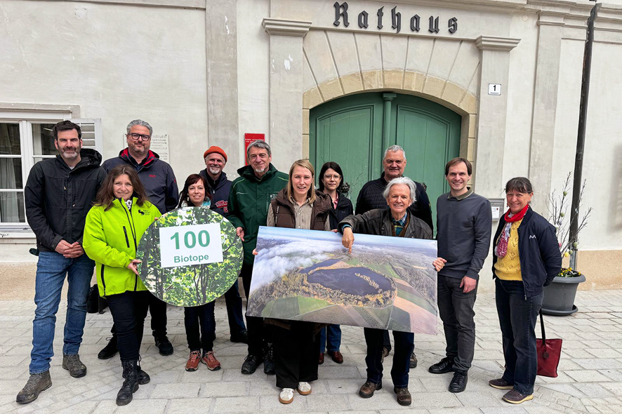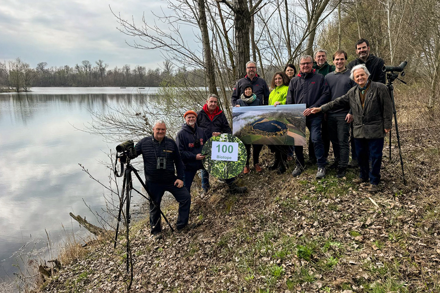 Bildtext: Die Naturschutzriege der Region und die Vertreter von ALAS bei der Präsentation der Kies-Seen