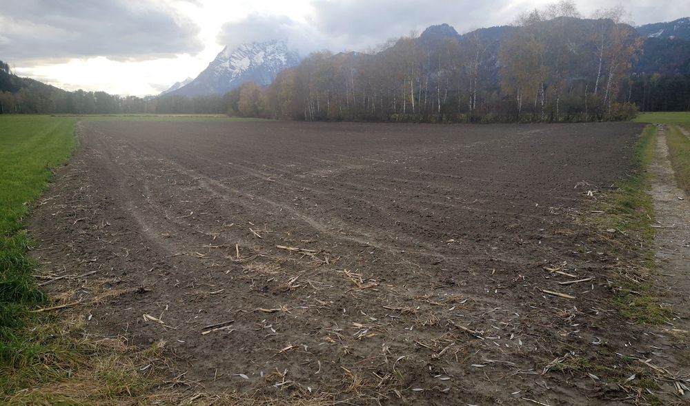Umwandlung der intensiv bewirtschafteten Ackerfläche durch Einsaat in extensive Grünlandfläche, Blick auf die Grünlandfläche (Einsaatversuch der HBLFA Raumberg-Gumpenstein), Fotos © Karin Hochegger