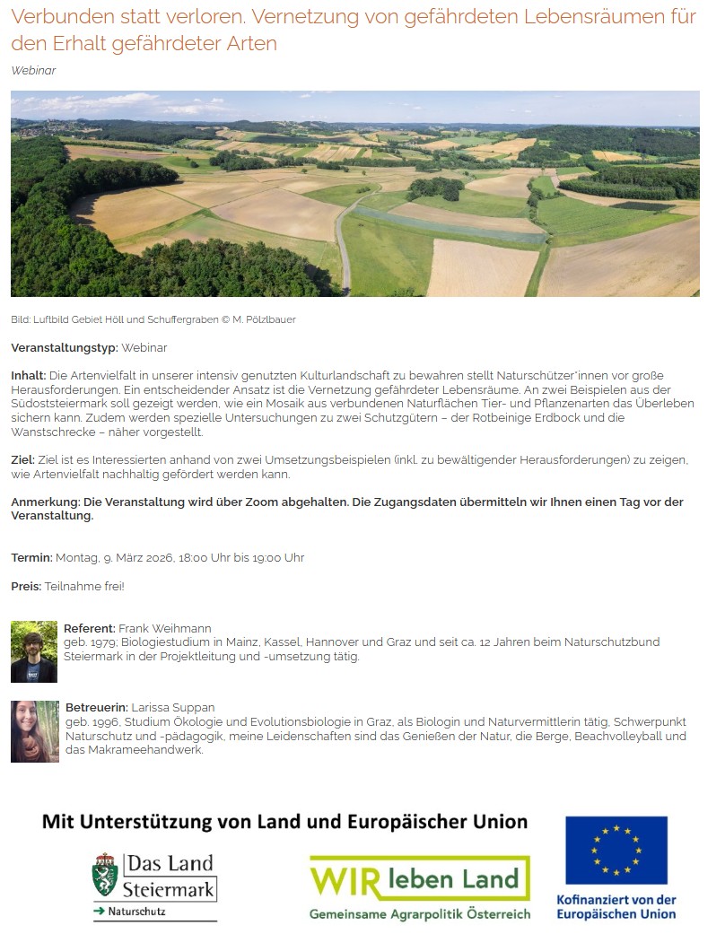 Der Naturschutzbund Steiermark lädt zum Zoom-Webinar der Naturschutz Akademie ein: